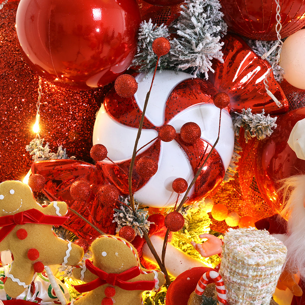 XH107RO Rama Esferitas Rojo Frost 68cm.