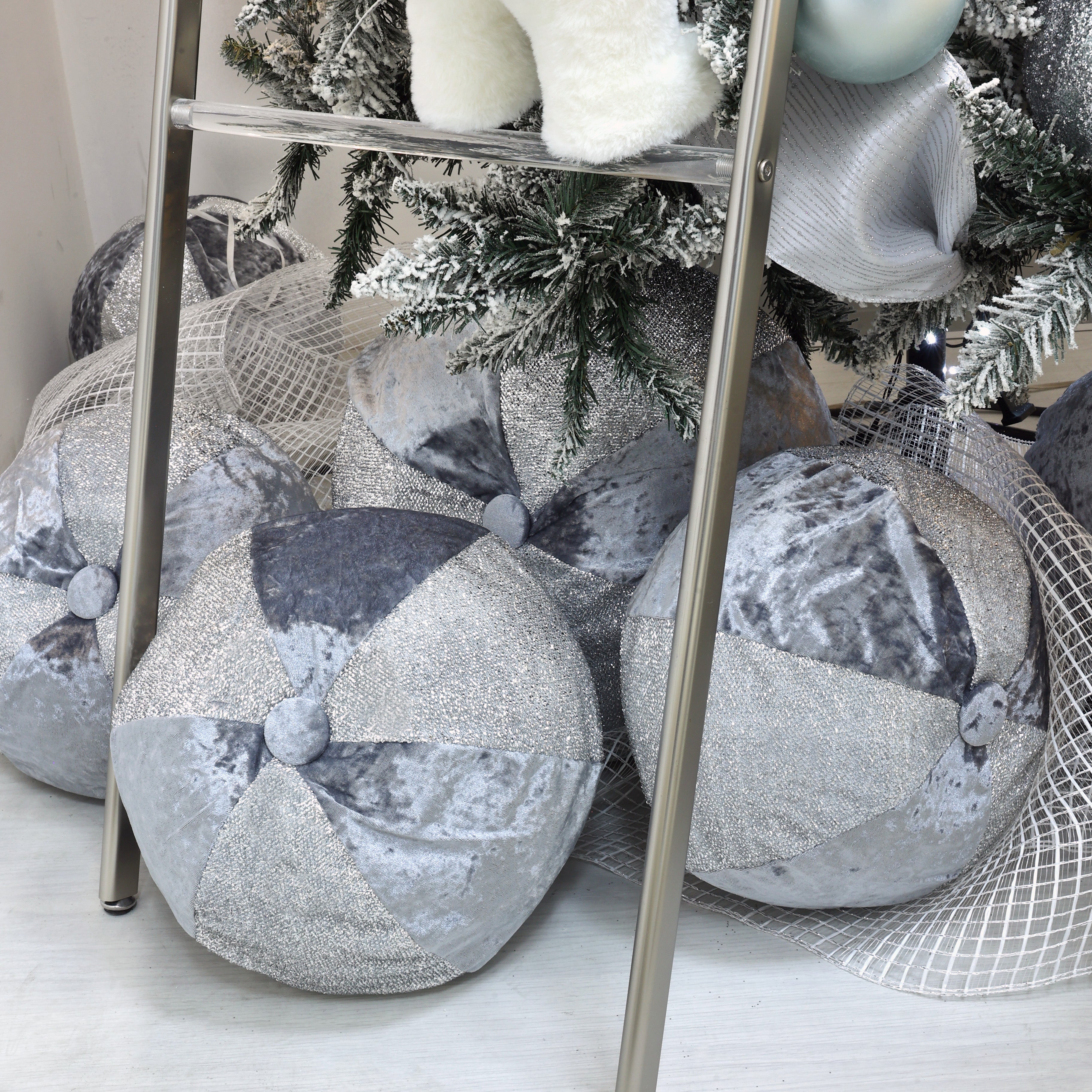 CX24014P Ornamento Puff Colapsable Gris y Plata 40 cm.