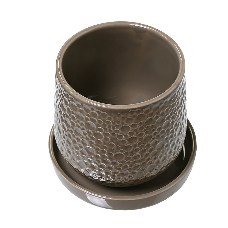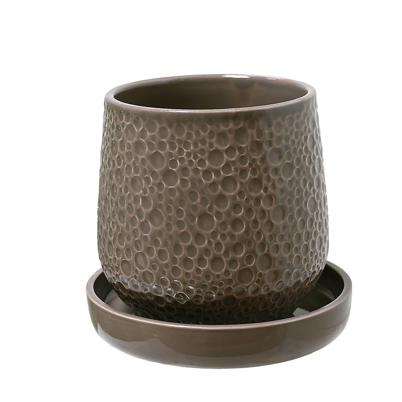 KAL030T Maceta Pebble Alargada Taupe 14x14cm (Incluye Plato)