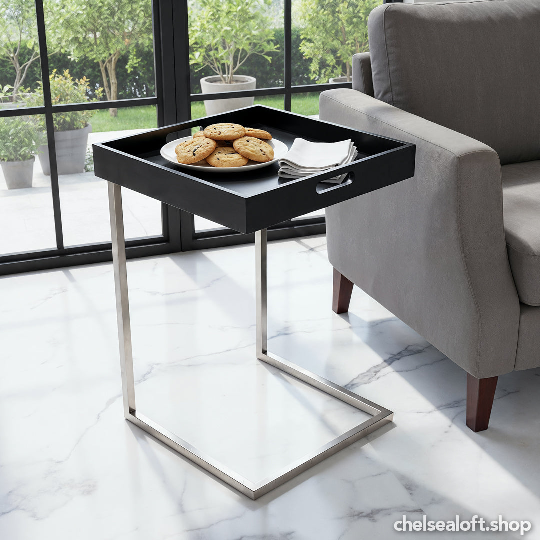 KI996 Mesa Servicio C/Charola Desmontable Negro y Meta 40(L) X 40(P) X 56(A) CM.
