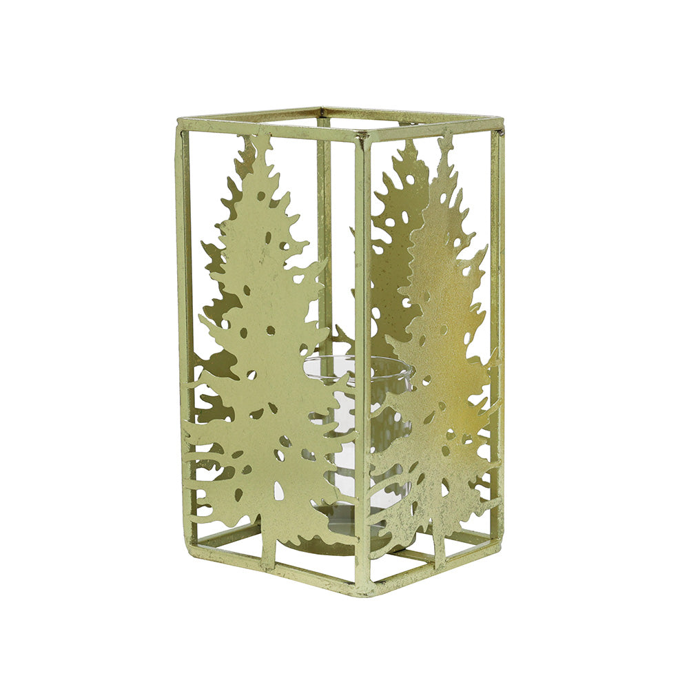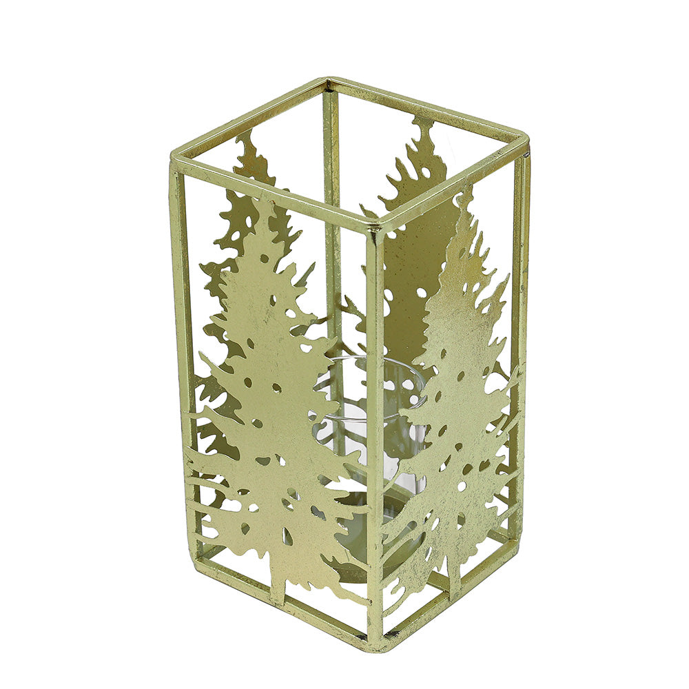 MQ7319OG Portacirio Rectangular Pinos Metal Oro Grande 25x14cm.