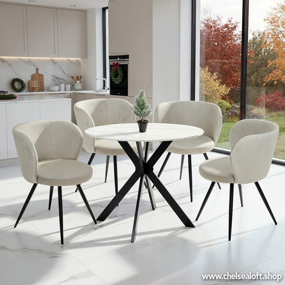 TC2411BN Mesa Redonda 90cm. Cerámica Blanca Nube y Base Negra