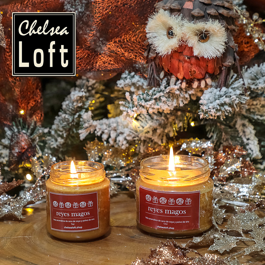 AN12RM Vela Reyes Magos Con Cera De Soya y Polvo De Oro 12 Oz.